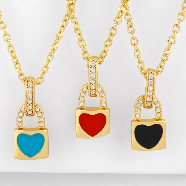 Liquidación 2023, nuevos accesorios europeos y americanos, collar con colgante de corazón con forma de candado, collar para parejas, venta al por mayor, nkq58