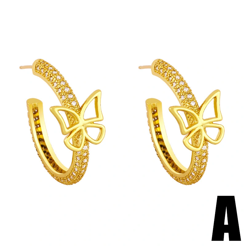 Pendientes de circonita cúbica bañados en oro con 26 letras inglesas, joyería femenina, venta caliente, era009
