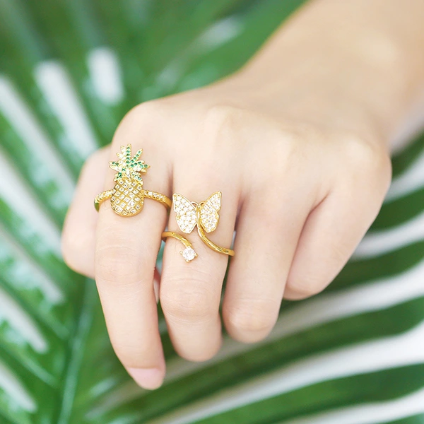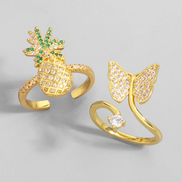 Liquidación, anillo de mariposa con personalidad creativa europea y americana, gran oferta, anillo pequeño de circonita con forma de piña y fruta fresca, RIN02