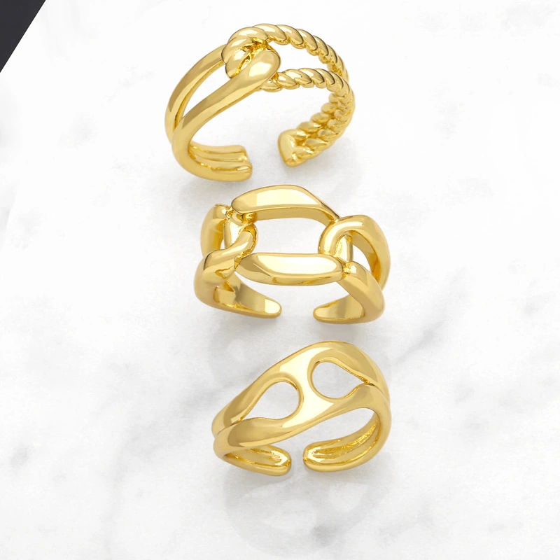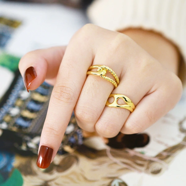 Liquidación, joyería popular europea y americana, anillo abierto de doble capa con giro, estilo frío, anillo geométrico de nicho, borde 55