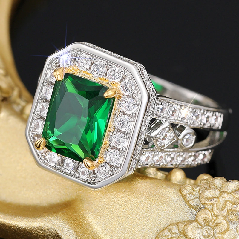 Nuevo anillo con incrustaciones cuadradas para mujer, estilo lujoso y ligero, anillo de temperamento de alta gama, joyería de moda para banquetes y bodas.