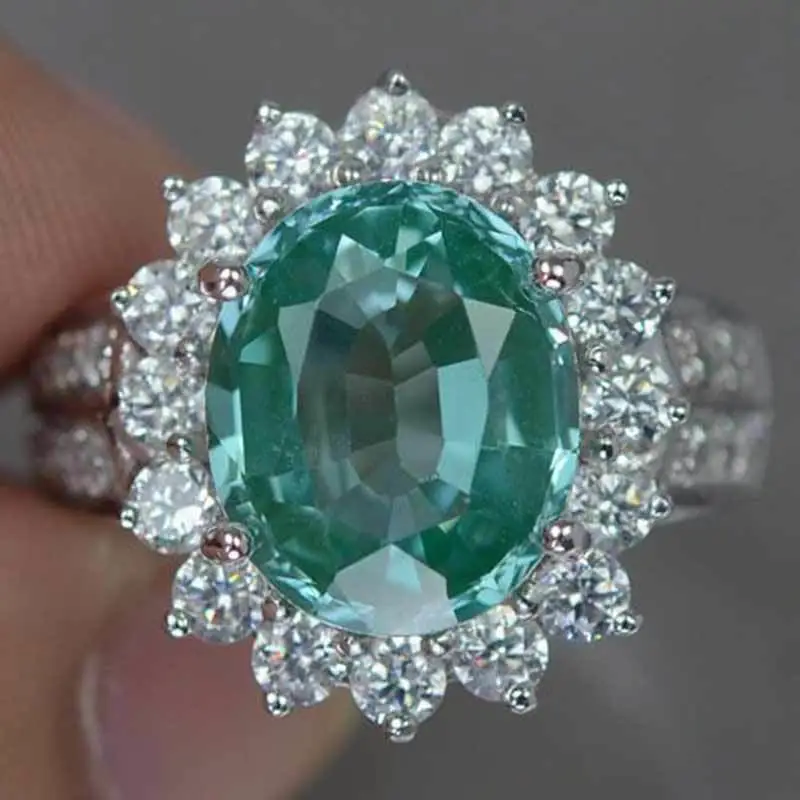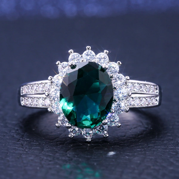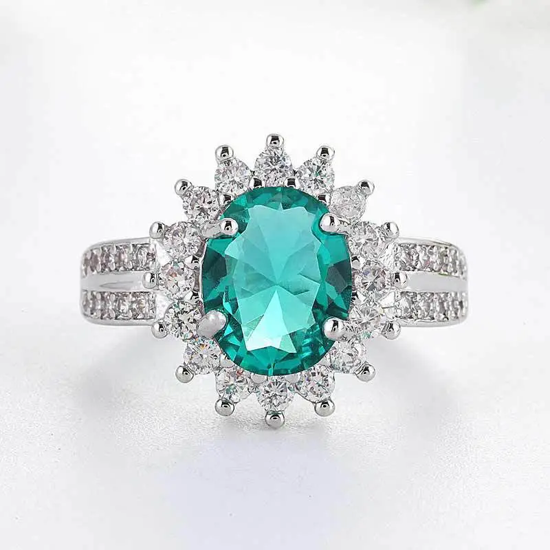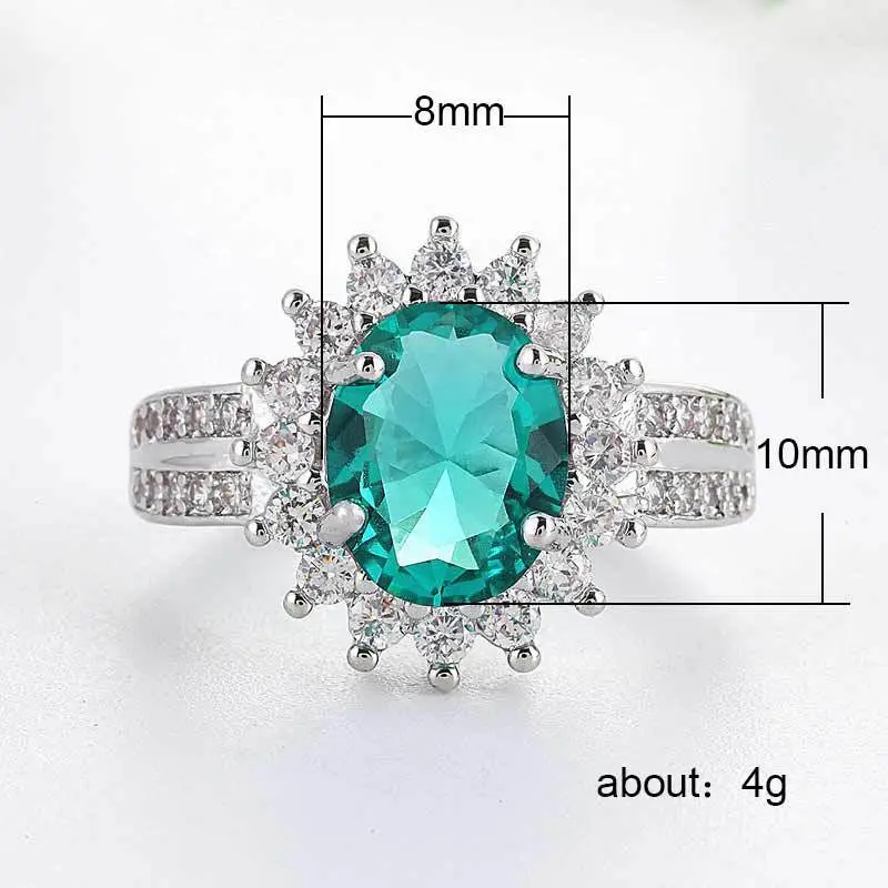 Nuevo anillo de compromiso europeo y americano con circonita verde y flor, regalo de aniversario de boda.