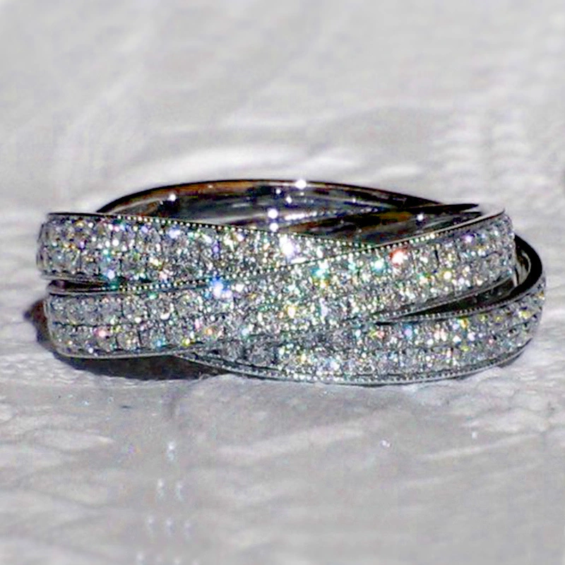 Nuevo anillo pavé multicapa, estilo europeo y americano, con simulación de corona, elegante y digno accesorio de noche.