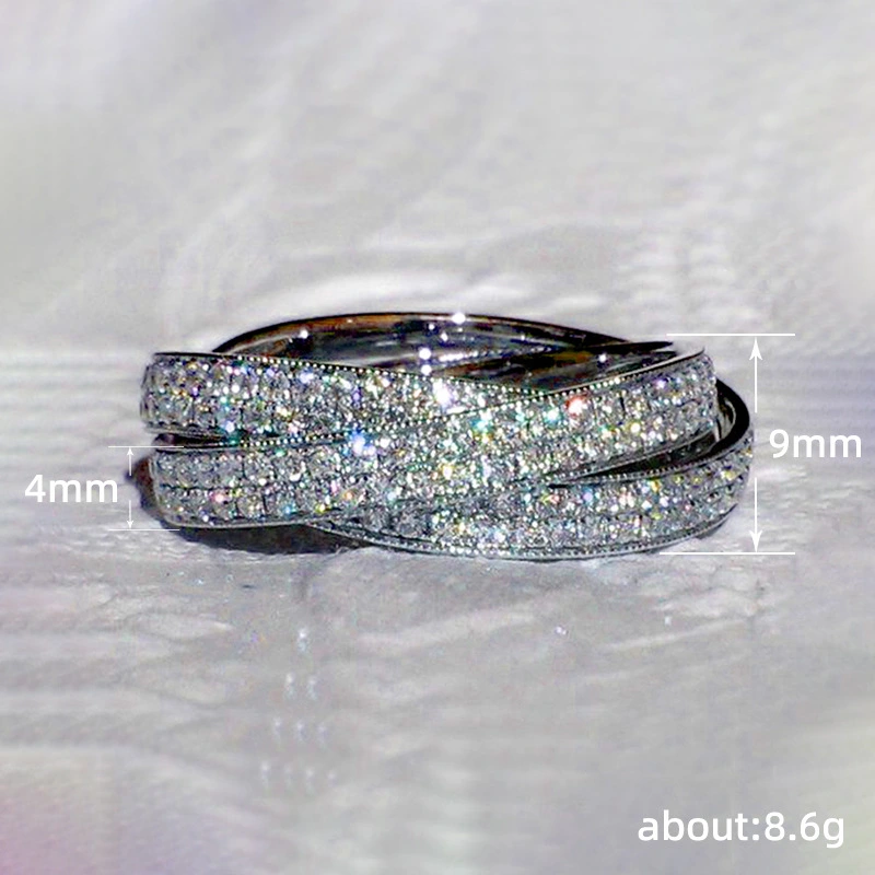 Anillo clásico de estilo celebridad con microincrustaciones, combinable con todo, con circonita de seis garras, anillo de bodas de lujo ligero de estilo europeo y americano.