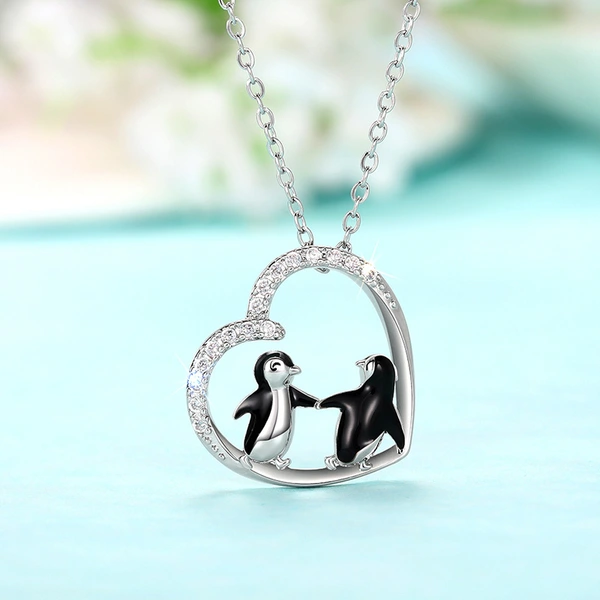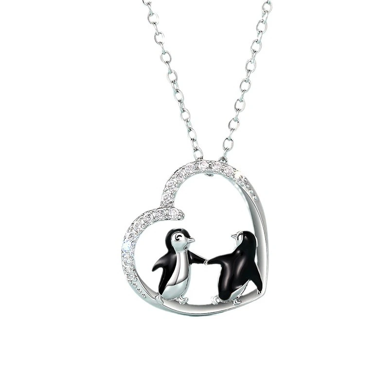 Nuevo collar con forma de corazón de pingüino, colgante creativo de mano en mano, collar de mejor amiga y buena hermana.