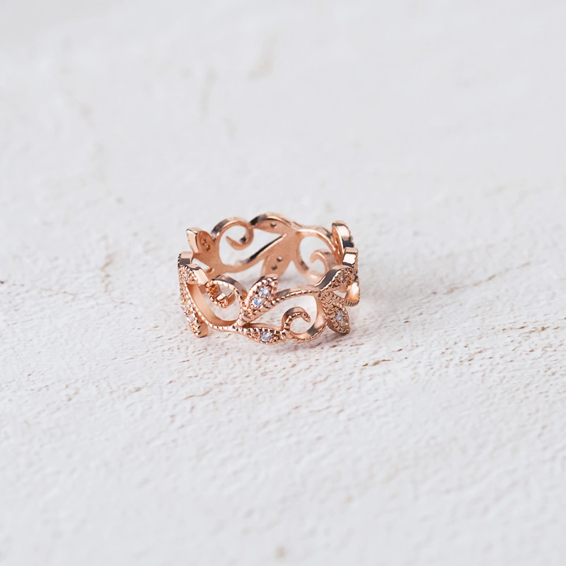 Nuevo y creativo anillo de circonita con forma de hoja de parra para mujer, ideal para fiestas, cócteles y meñique.