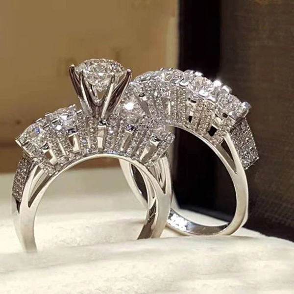 Nuevo y creativo anillo de circonita de dos piezas, muy vendido, para parejas europeas y americanas, conjunto de anillos de boda.