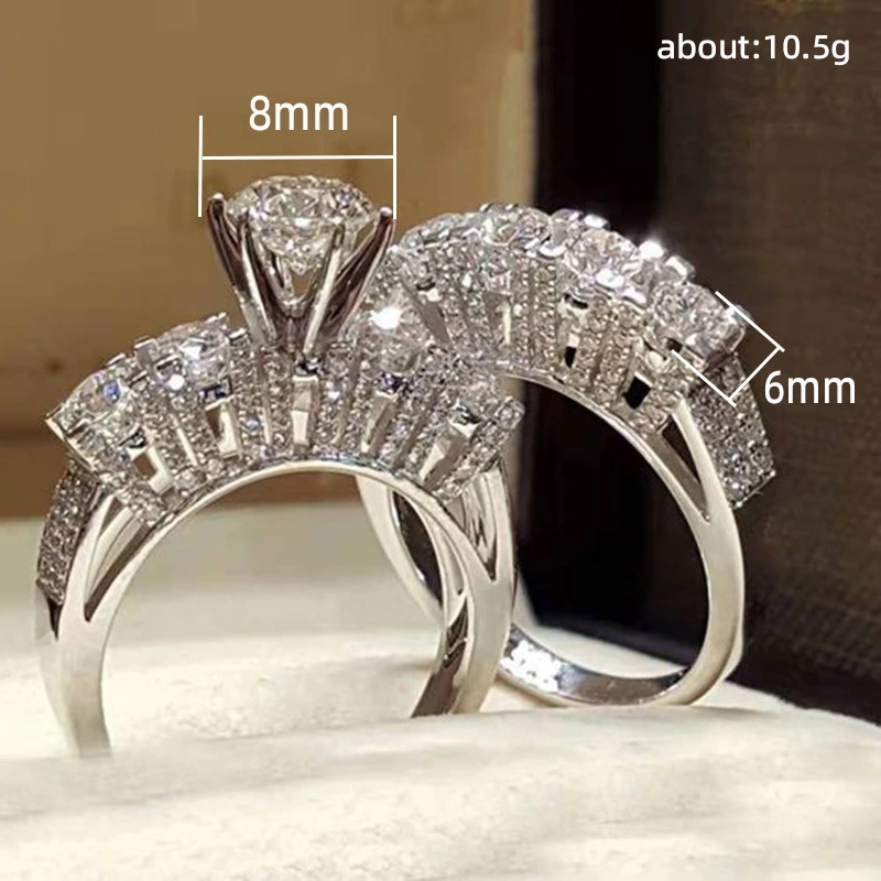Anillo clásico de estilo celebridad con microincrustaciones, combinable con todo, con circonita de seis garras, anillo de bodas de lujo ligero de estilo europeo y americano.