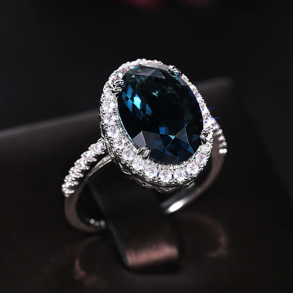 Nuevos accesorios elegantes para mujer, anillo de circonita azul pavo real en forma de huevo, anillo de celebración de aniversario para mujer