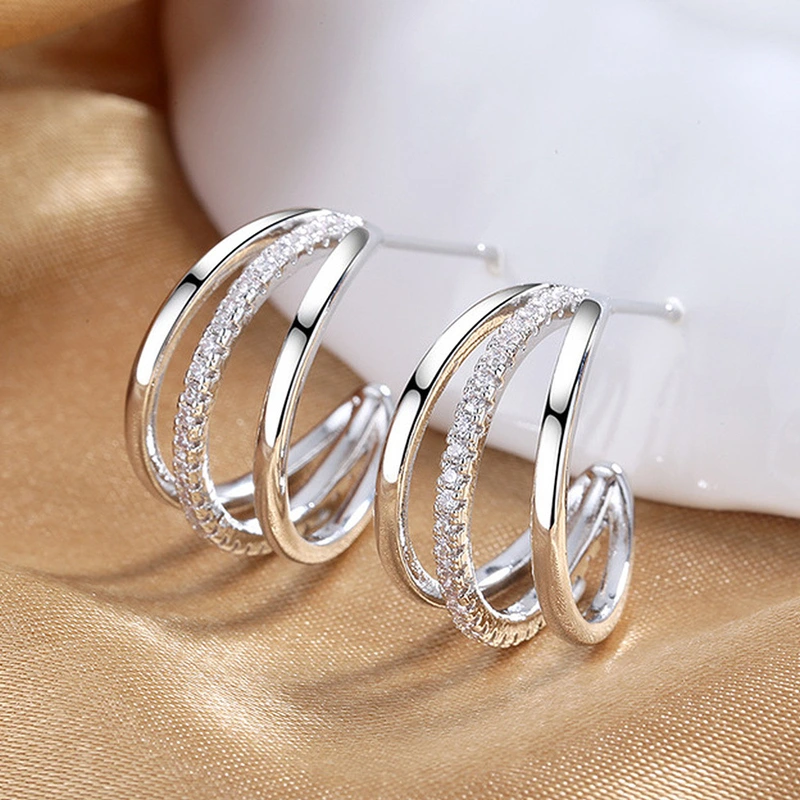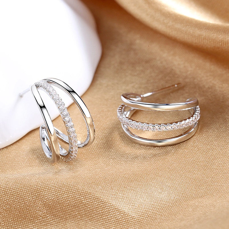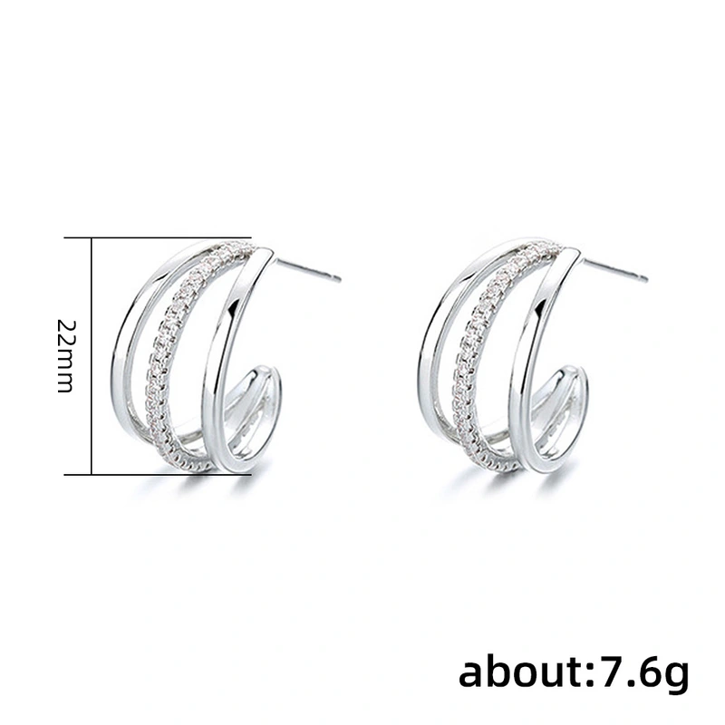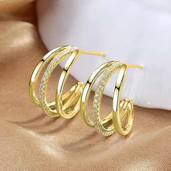 Nuevos pendientes de aro en forma de C de alta gama para mujer, con personalidad, multicapa, de tres líneas, con temperamento de celebridades de Internet.