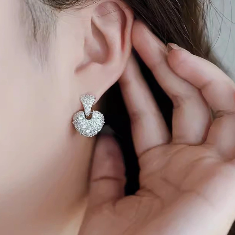 Nuevos pendientes de corazón de melocotón para mujer, joyería con forma de corazón de temperamento europeo y coreano, falda brillante y llamativa con pendientes.