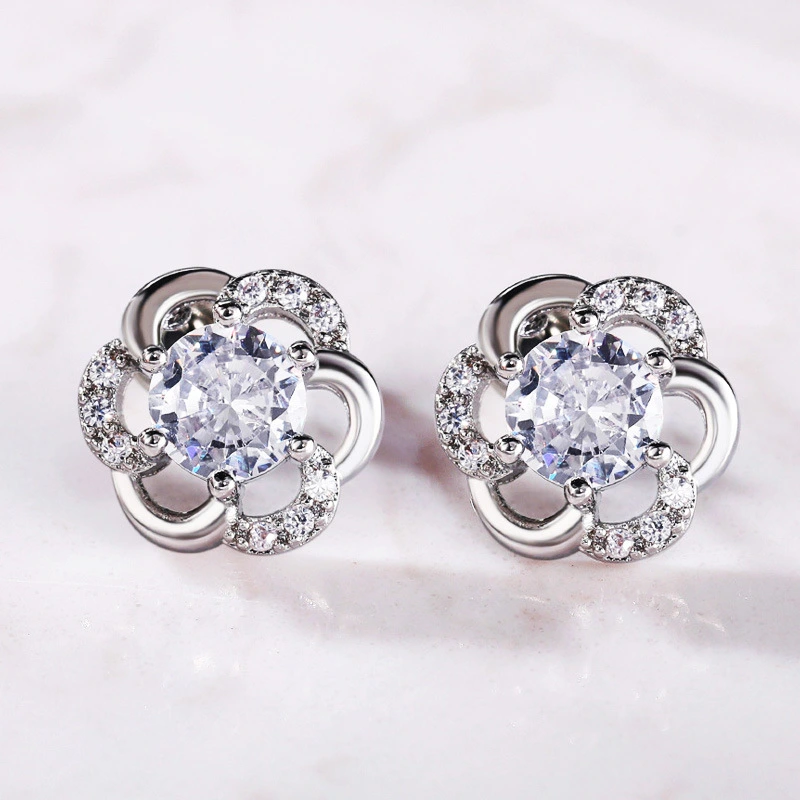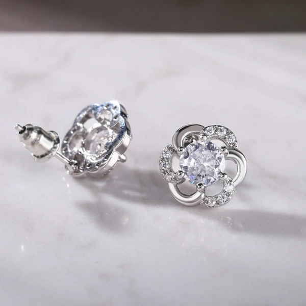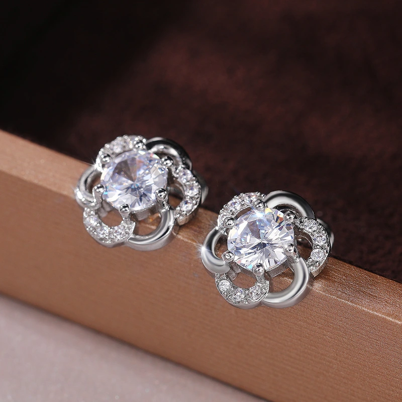 Nuevos pendientes de flores de diamantes de moda de estilo coreano para mujer, exquisitos pendientes de circonita, fabricantes al por mayor.