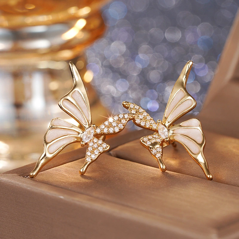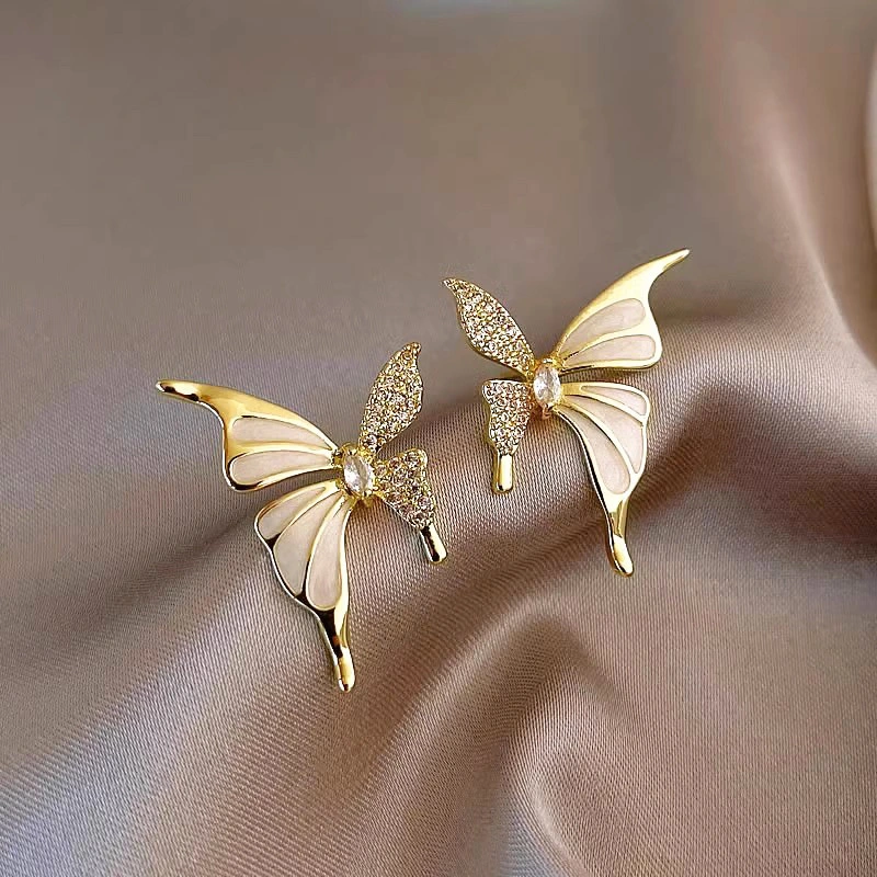 Nuevos pendientes de gota de aceite de comercio electrónico para mujer, joyería de mariposa con diseño de bosque, circonita microincrustada, elegante nicho.
