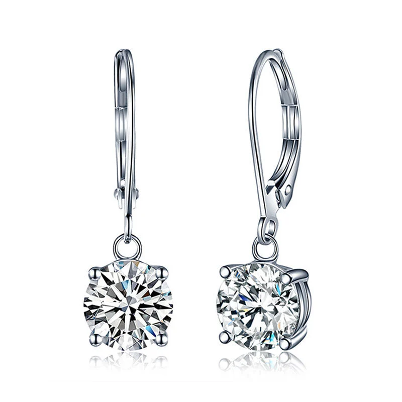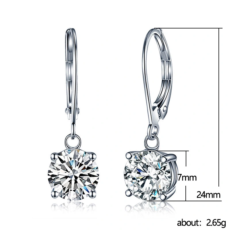 Pendientes clásicos de circonita de cuatro garras para mujer, con transmisión en vivo, chapados en oro blanco y cobre.