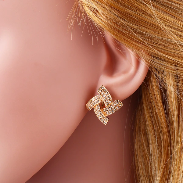 Pendientes de doble hilera muy populares en Europa y Estados Unidos, chapados en cobre y oro auténtico con incrustaciones de circonitas, con clip para el hueso de la oreja, ERA351.