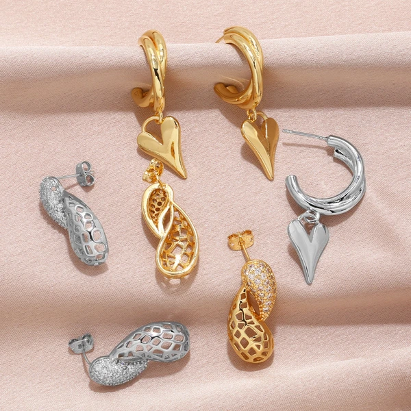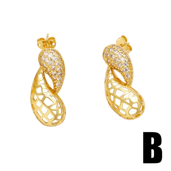 Pendientes colgantes con forma de corazón de melocotón y personalidad femenina, con incrustaciones de gota de agua, estilo erw34