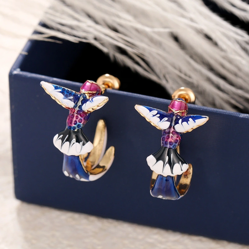 Pendientes colgantes de aceite con forma de colibrí, muy creativos y populares, para mujeres europeas y americanas.