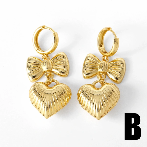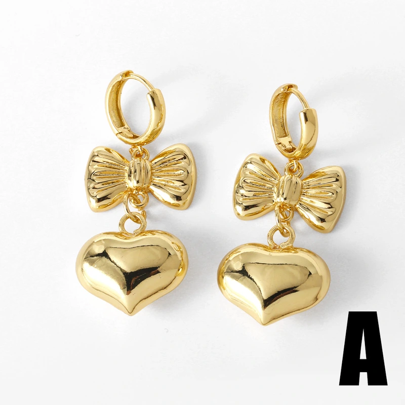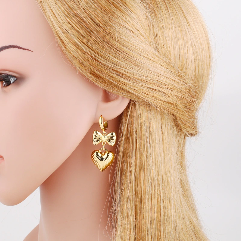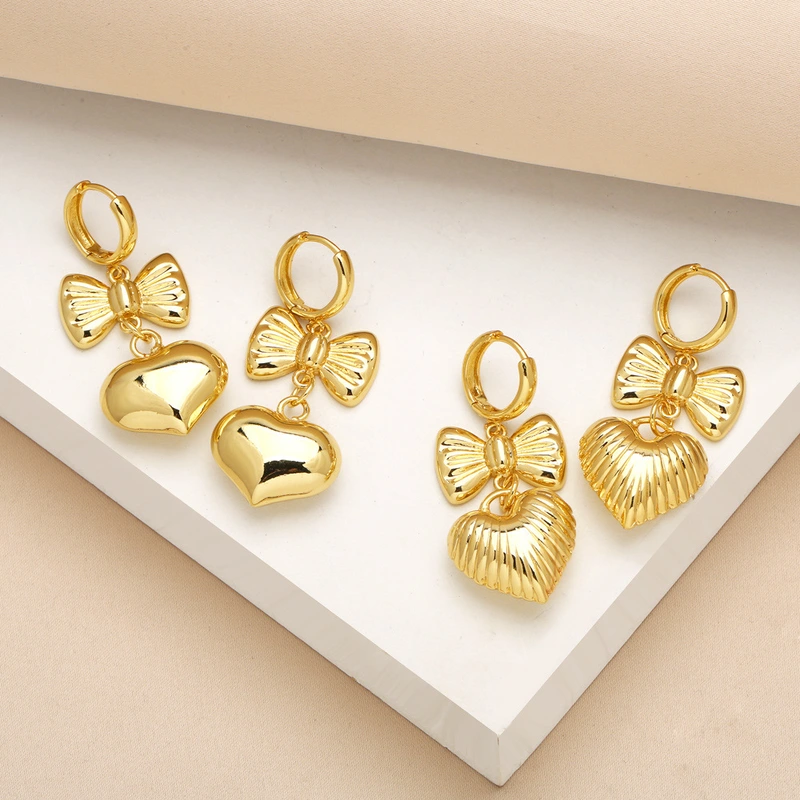 Pendientes colgantes de amor chapados en cobre con lazo de oro auténtico y forma de corazón. Era294.