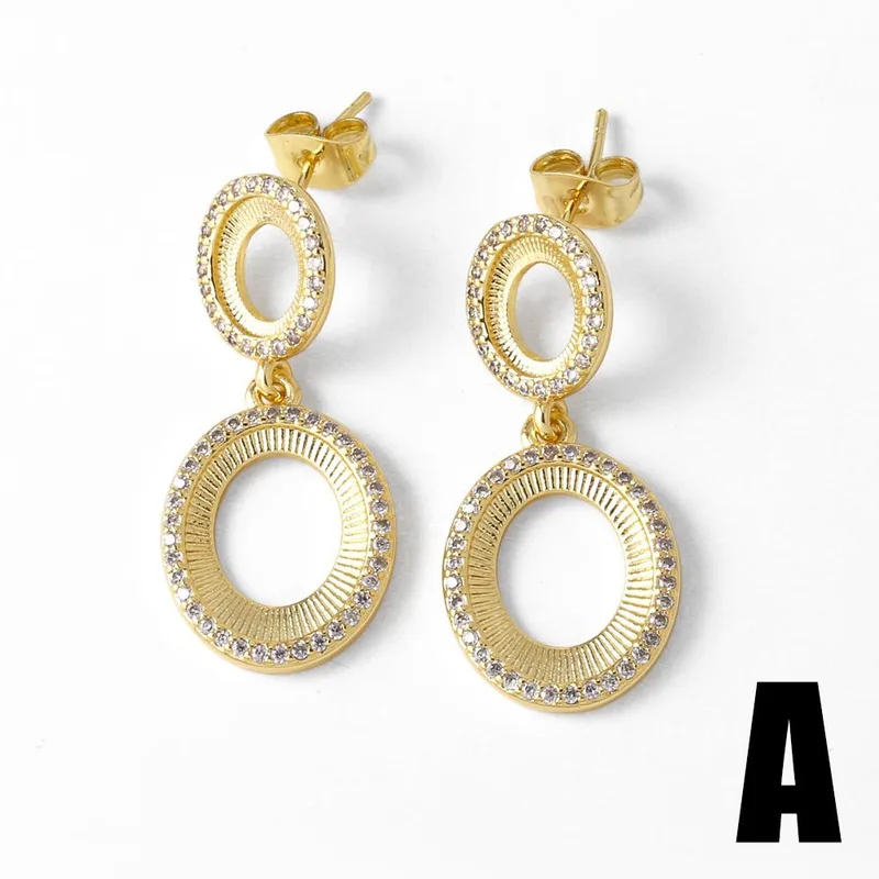 Pendientes de circonita cúbica bañados en oro con 26 letras inglesas, joyería femenina, venta caliente, era009