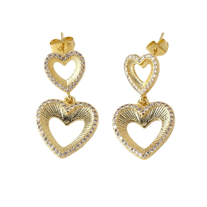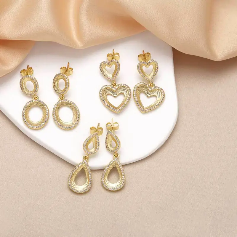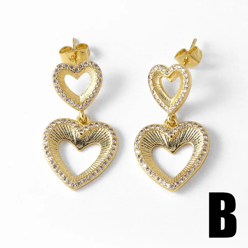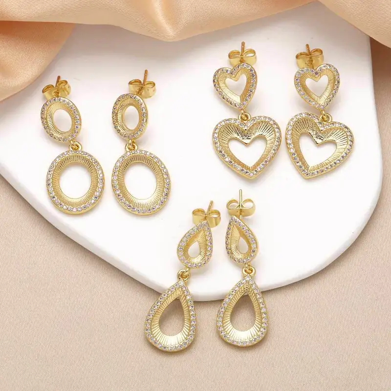 Pendientes colgantes de amor muy populares en Europa y Estados Unidos, chapados en cobre y con incrustaciones de oro auténtico, con circonitas, pendientes ERA329.