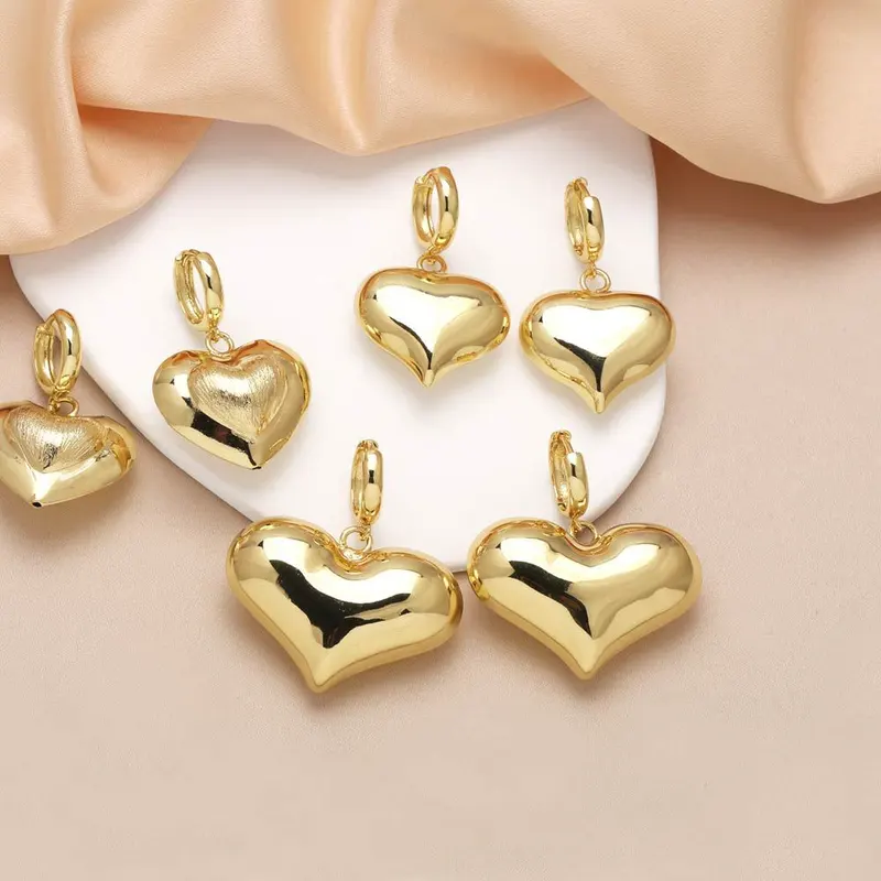 Pendientes colgantes de amor para mujer, de alta calidad, chapados en oro brillante, con forma de corazón, de la marca Era334.