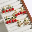 Pendientes de clip chapados en oro con forma de cereza, insectos y frutas, estilo europeo y americano, como joyas, ERS09