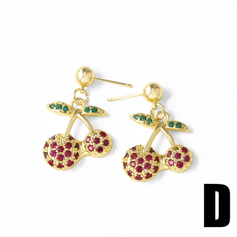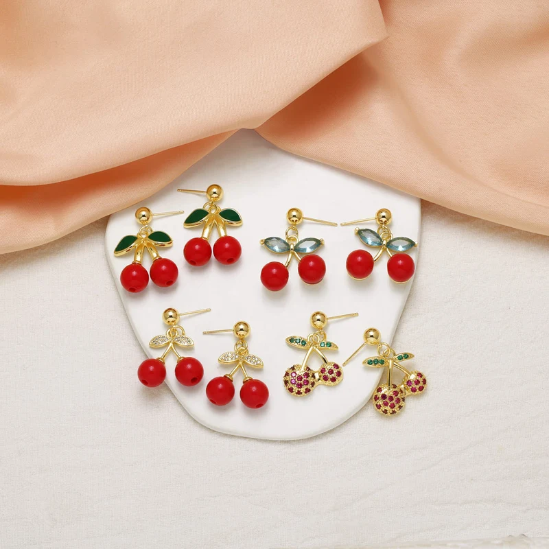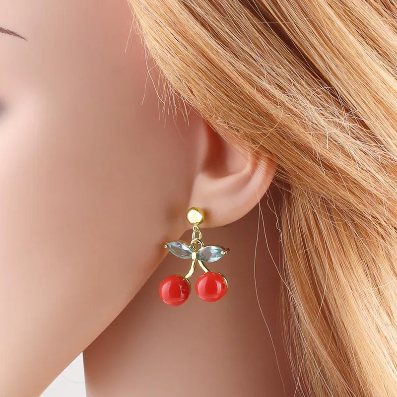 Pendientes de cereza y fruta, sencillos y modernos, de estilo europeo y americano, chapados en oro, para mujer, era237