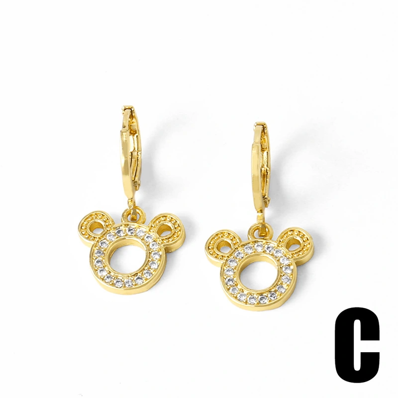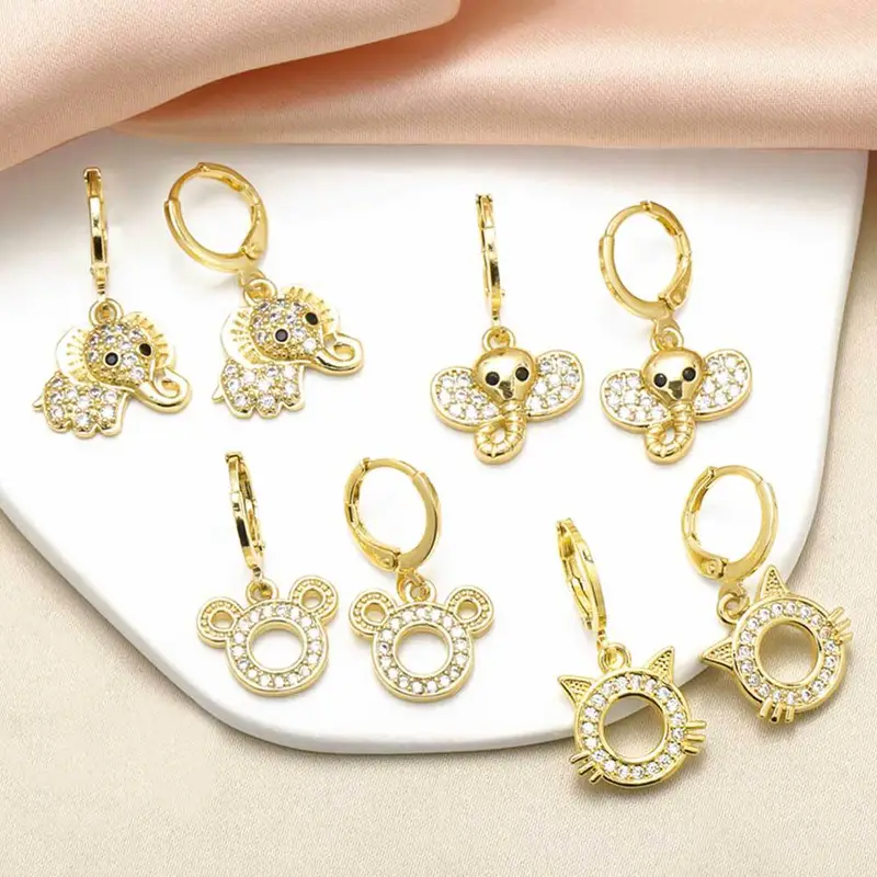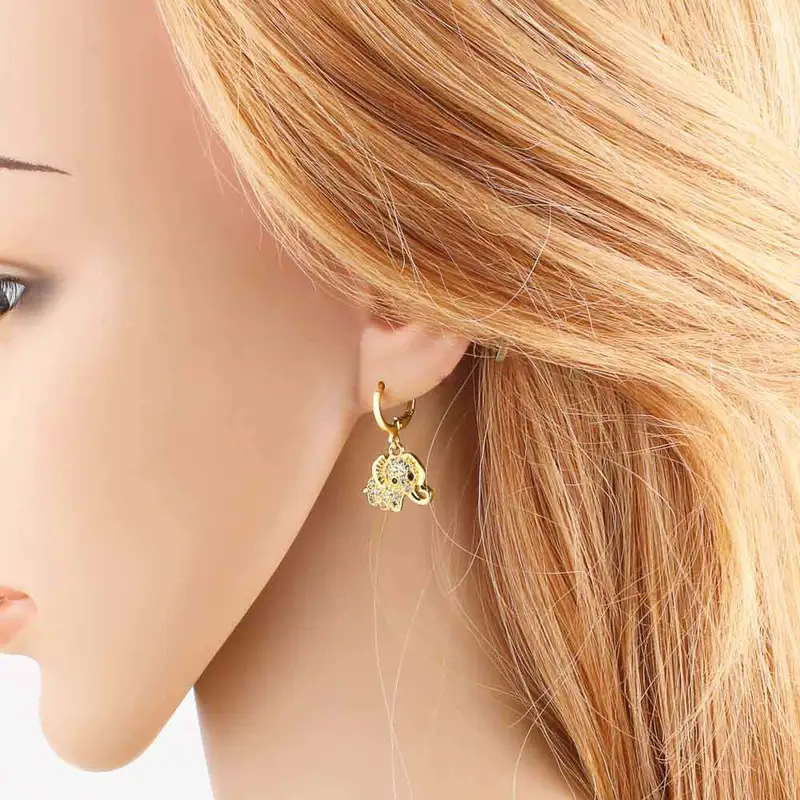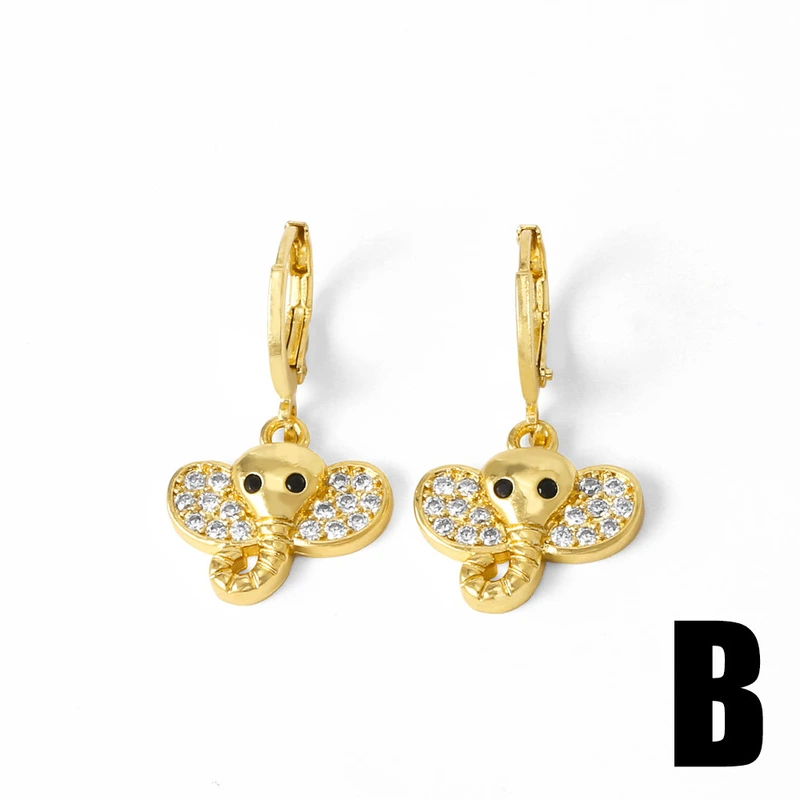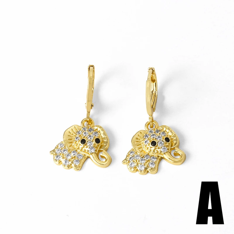 Pendientes colgantes de elefante con diseño de animales europeos y americanos, con circonitas chapadas en oro para mujer, pendientes era383