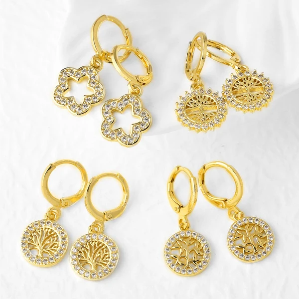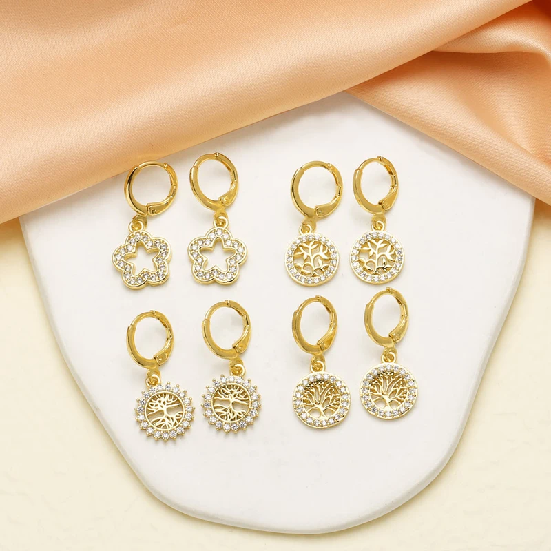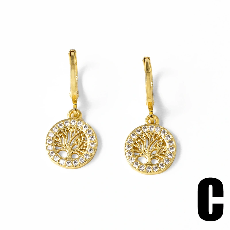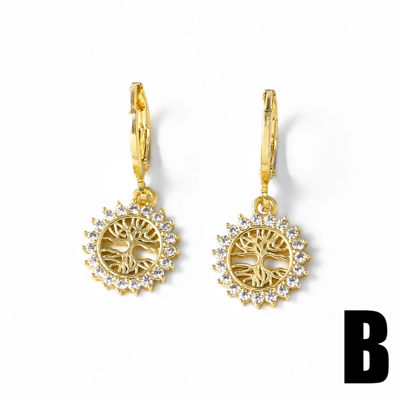 Pendientes colgantes de oro de 18 quilates con diseño de árbol de la vida, chapados en cobre, de nicho, de joyería, novedad, era049