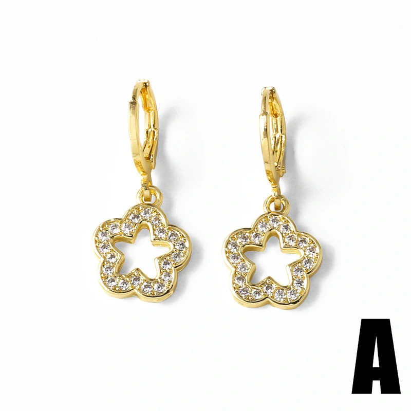 Pendientes de circonita cúbica bañados en oro con 26 letras inglesas, joyería femenina, venta caliente, era009