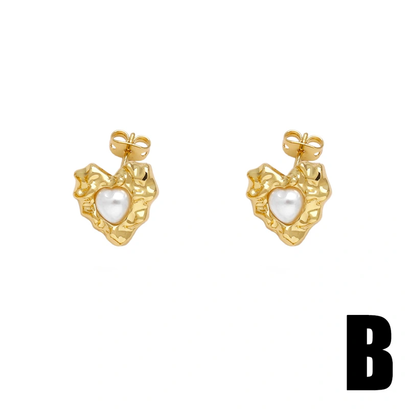 Pendientes colgantes de perlas para mujer, de lujo, chapados en oro, con forma de corazón, ERZ07