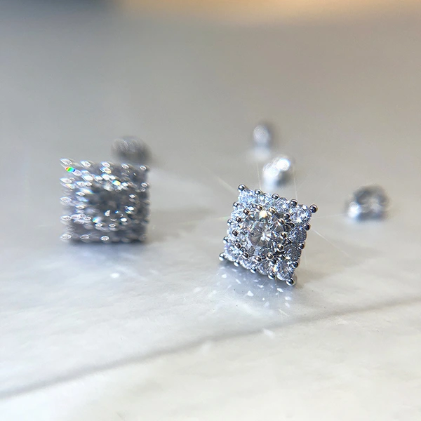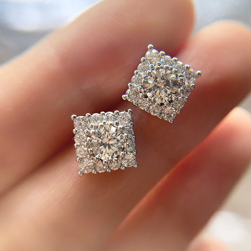 Pendientes coreanos de textura brillante y cuadrados, con temperamento moderno y versátil, con diamantes, redondos y femeninos.