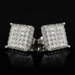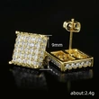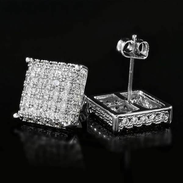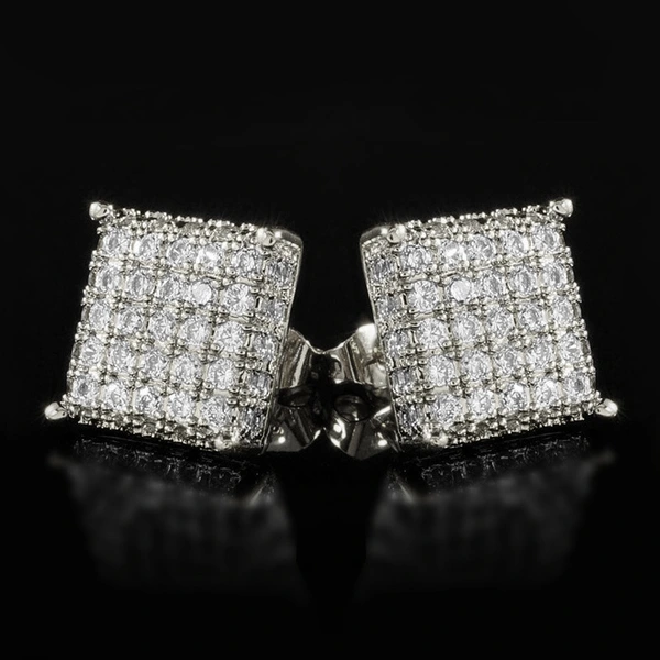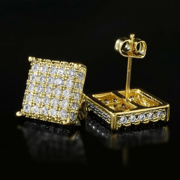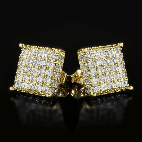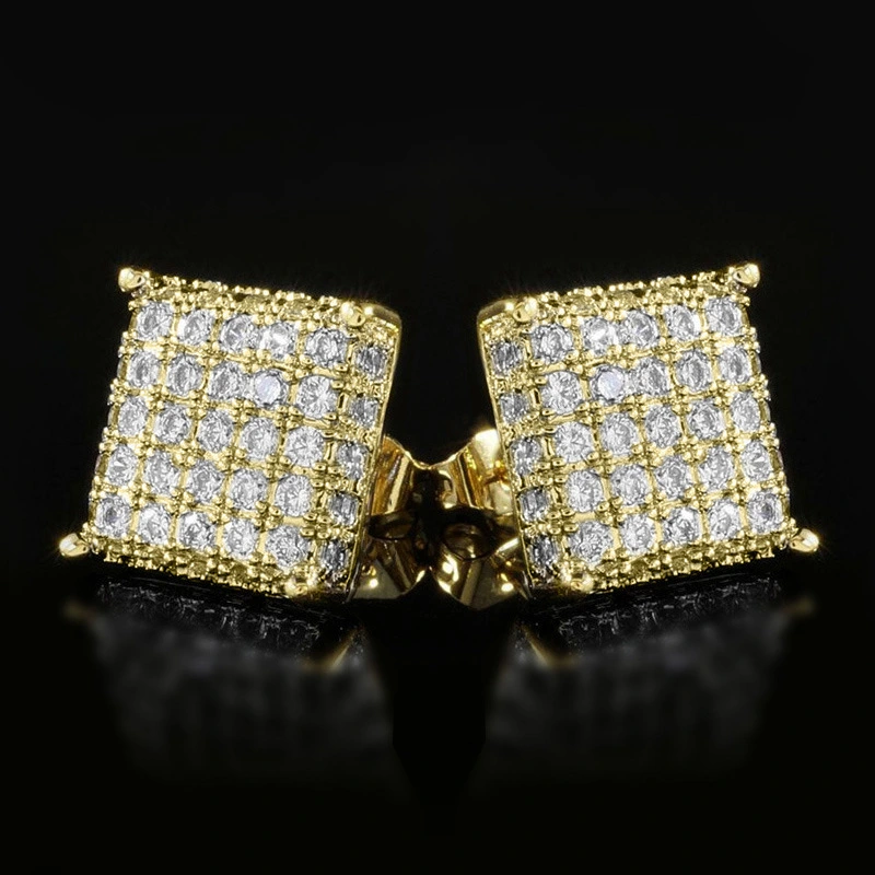 Pendientes cuadrados de circonita con microincrustaciones de cobre, estilo hip-hop, muy populares en Europa y América.