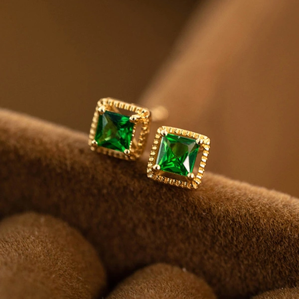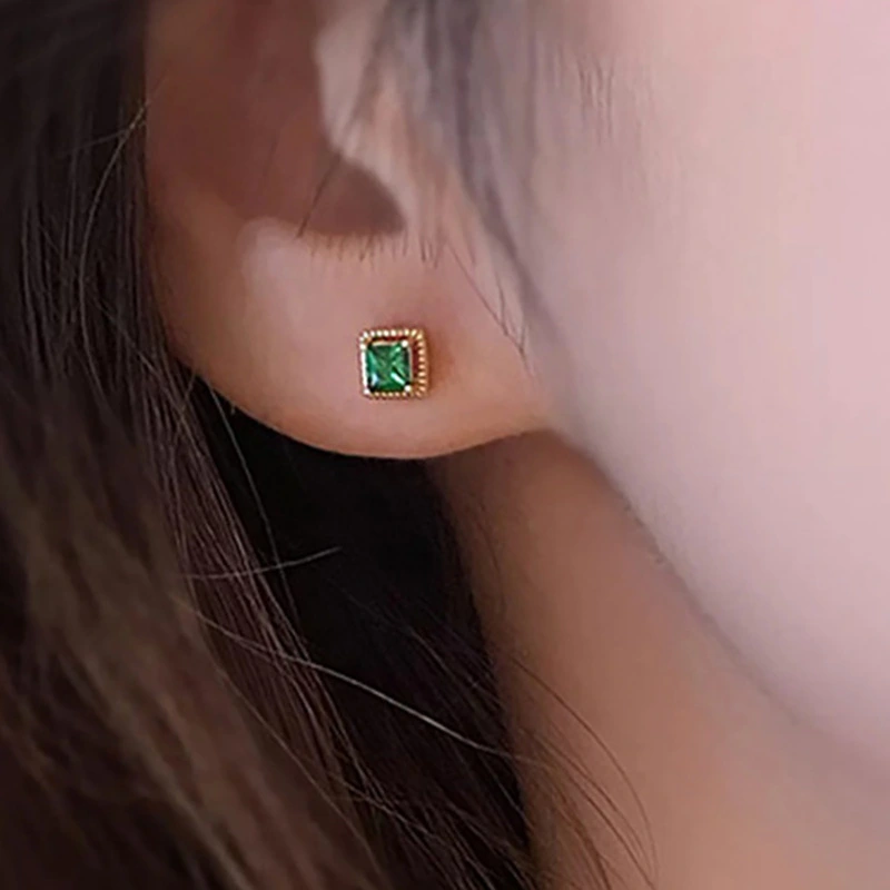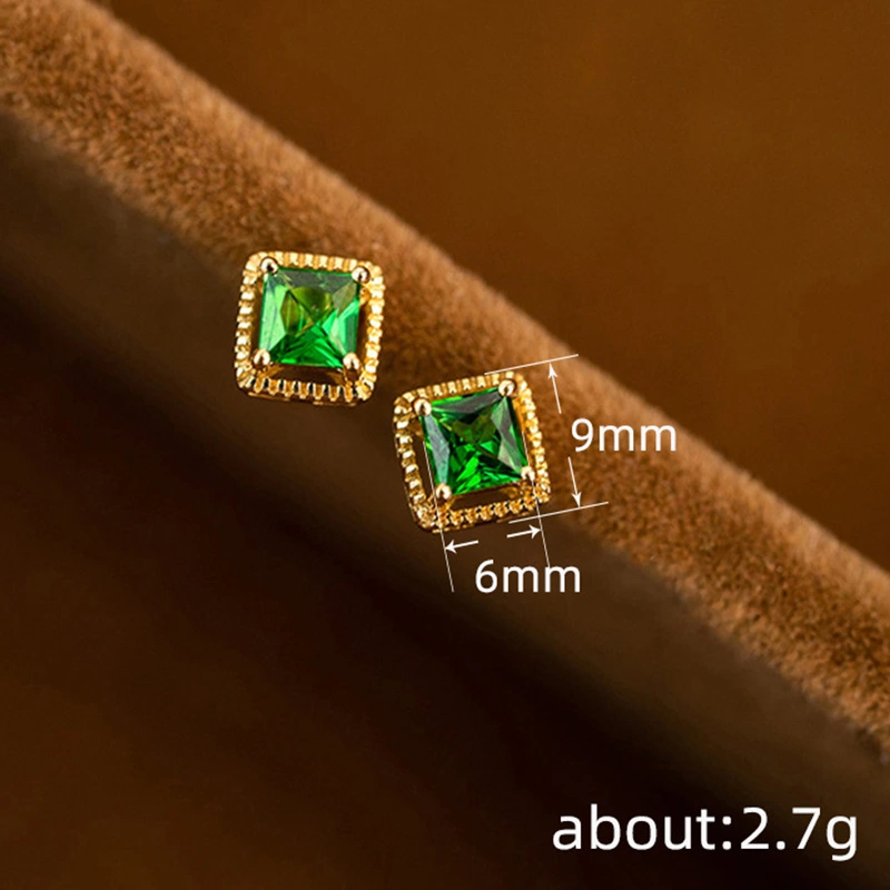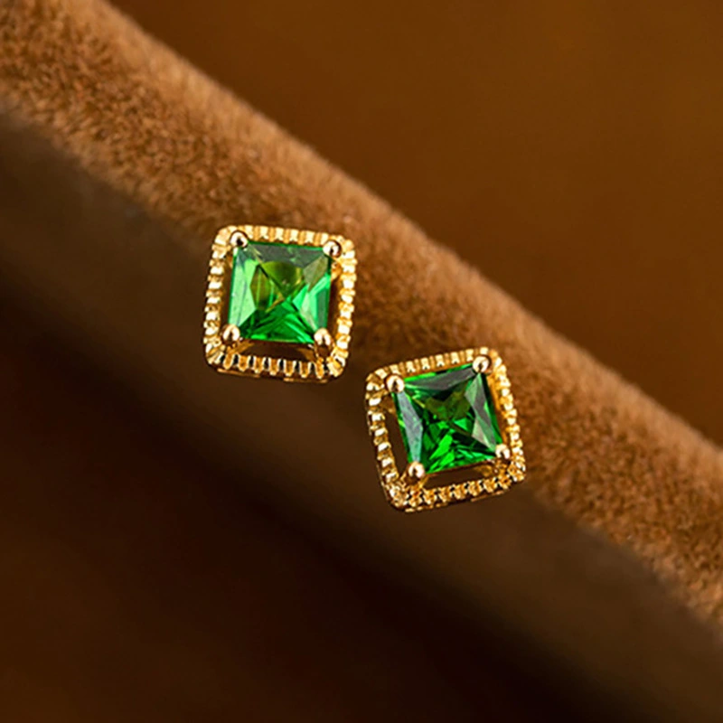 Pendientes cuadrados de circonita retro, pendientes de cuatro garras con forma de cubo de azúcar dorado, mini pendientes geométricos clásicos que combinan con todo.