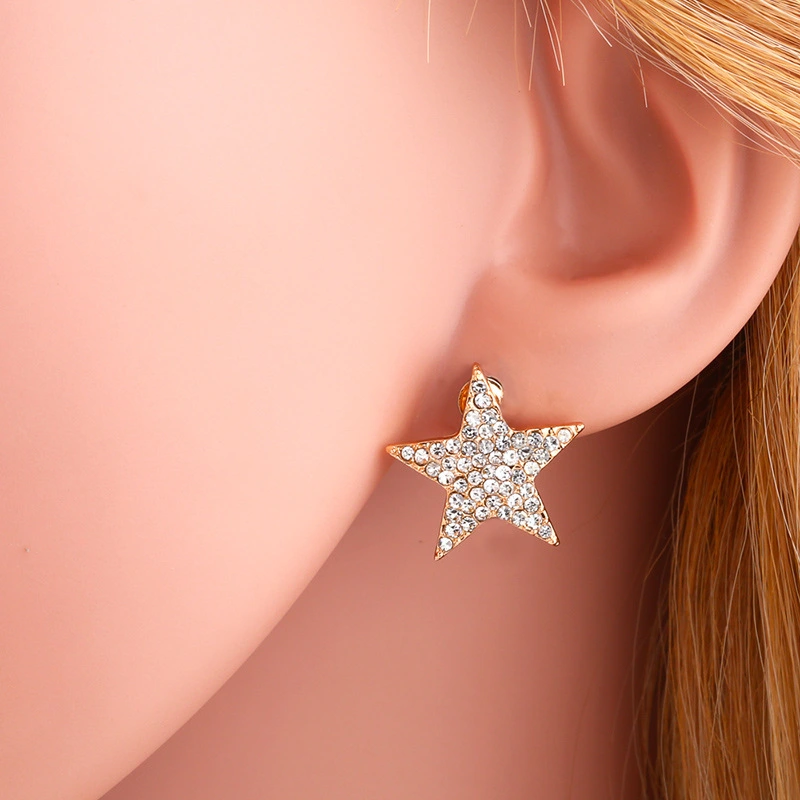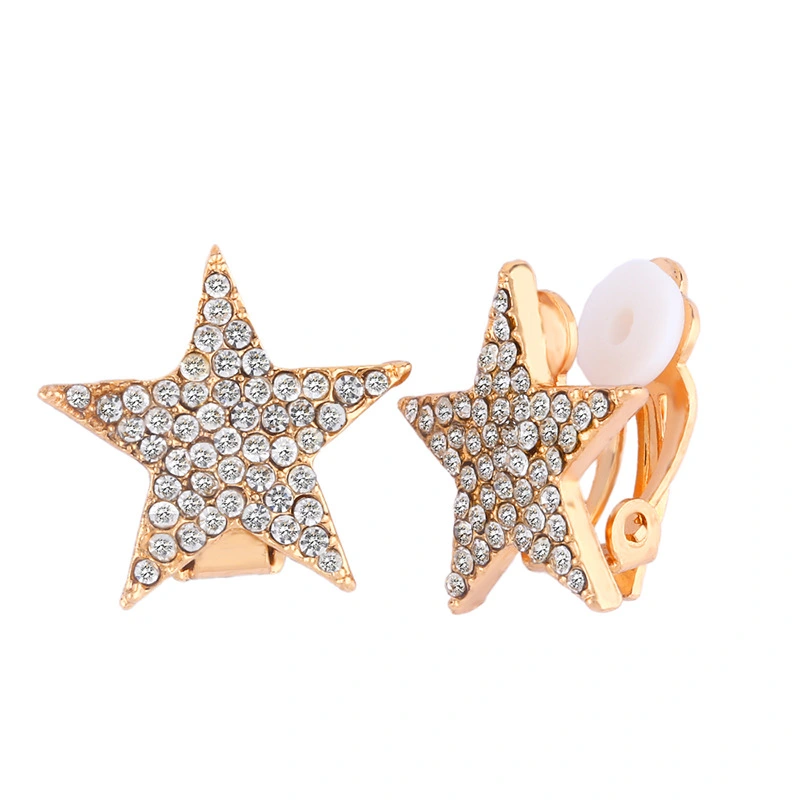 Pendientes de boda de estrella de cinco puntas para mujer, de estilo sencillo y popular en Europa y América, con incrustaciones de ladrillos y piedras, con clip para la oreja, ERQ63