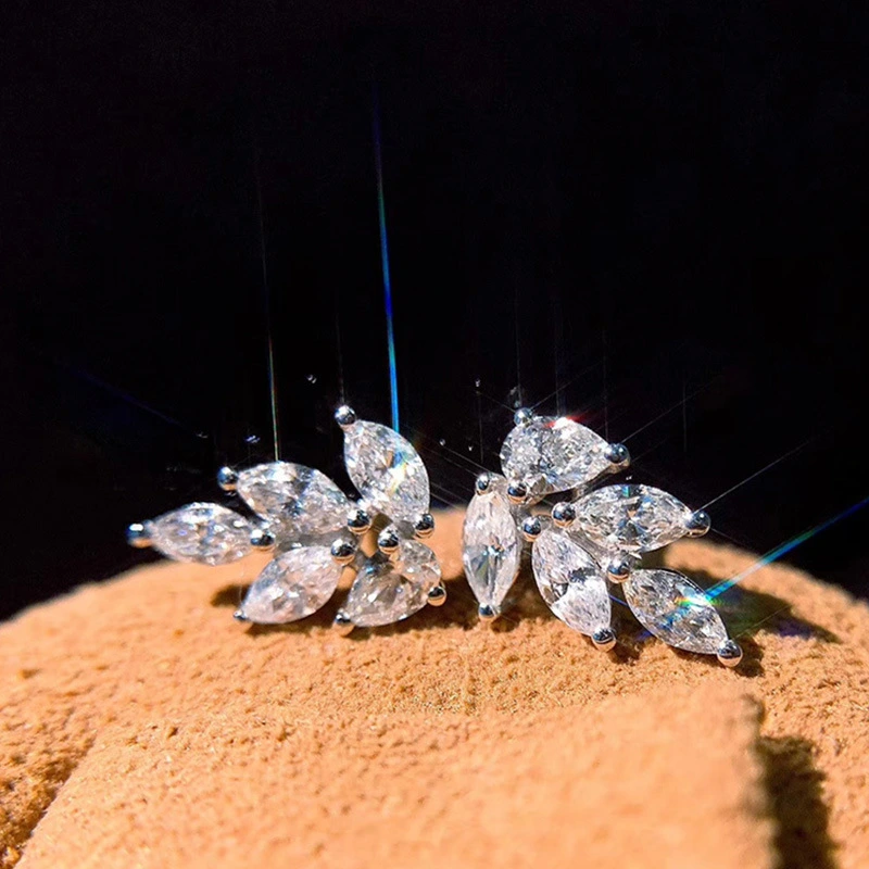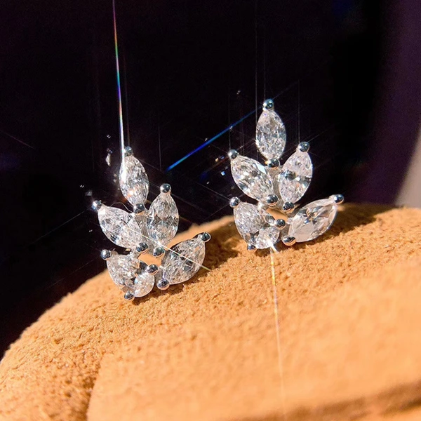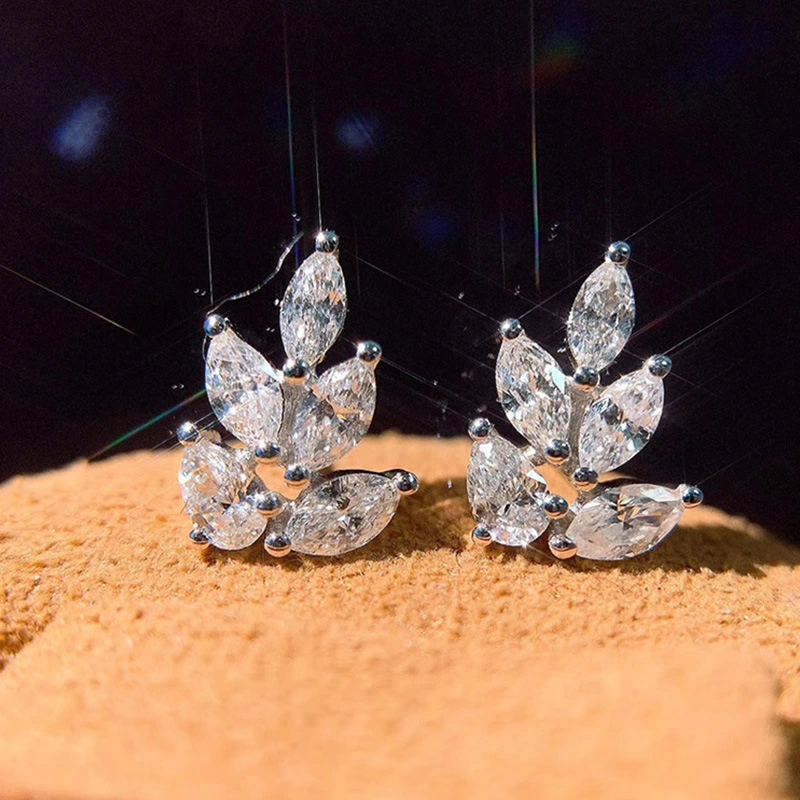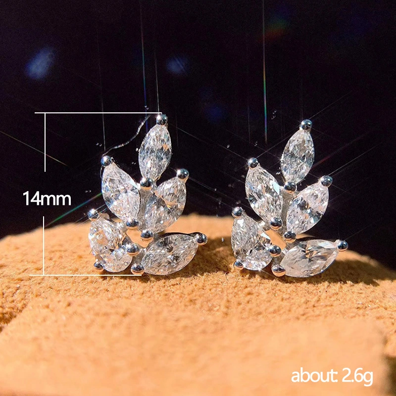 Pendientes de circonita AAA con incrustaciones de hojas exquisitas para mujer, en forma de marquesa, venta al por mayor de fábrica.
