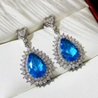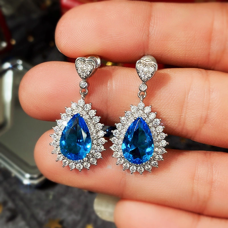 Pendientes de circonita azul en forma de lágrima de alta gama, venta directa de fábrica europea y americana, pendientes de recuerdo de viaje, joyería