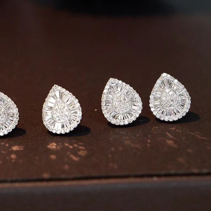 Pendientes de circonita con forma de lágrima de pera, brillantes, de estilo japonés y coreano, para mujer, con un temperamento dulce.