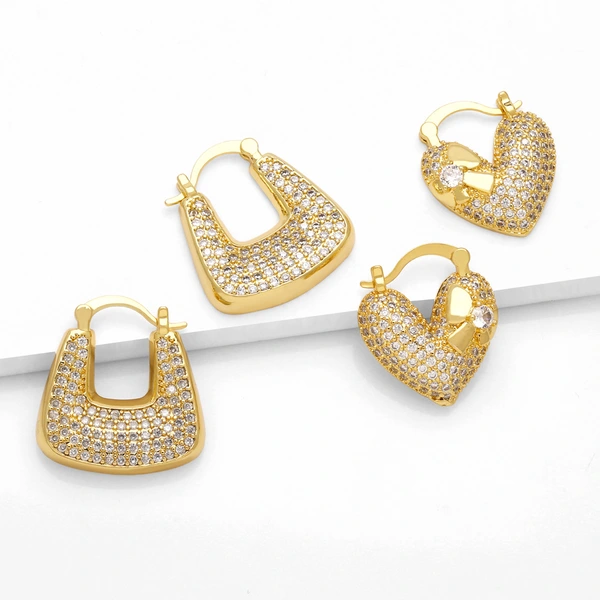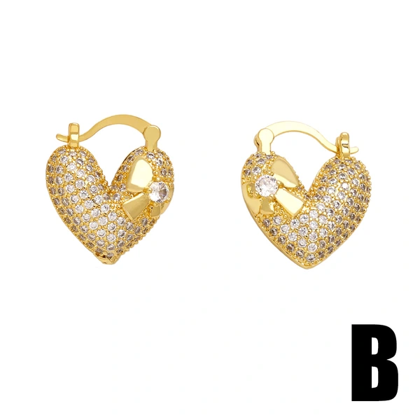 Pendientes de circonita con incrustaciones, de alta gama, chapados en oro, con forma de corazón de melocotón, ery21
