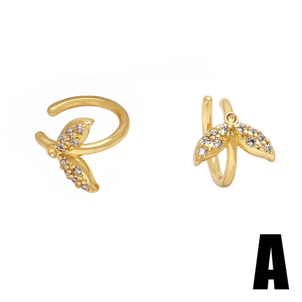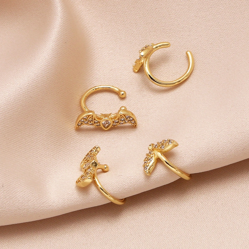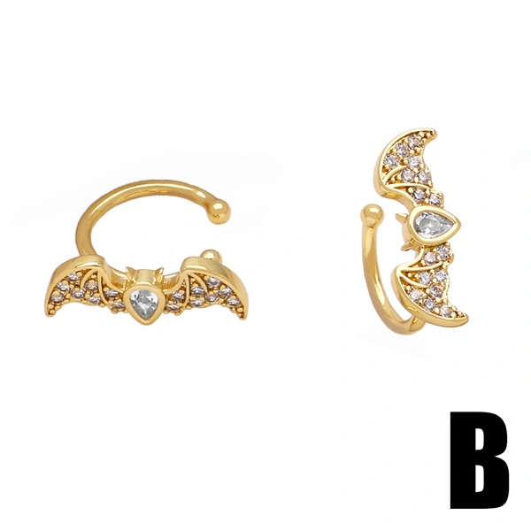 Pendientes de clip con forma de hueso de oreja de circonita, muy populares, versátiles y de alta gama, con diseño de murciélago chapado en oro para mujer, Era26.