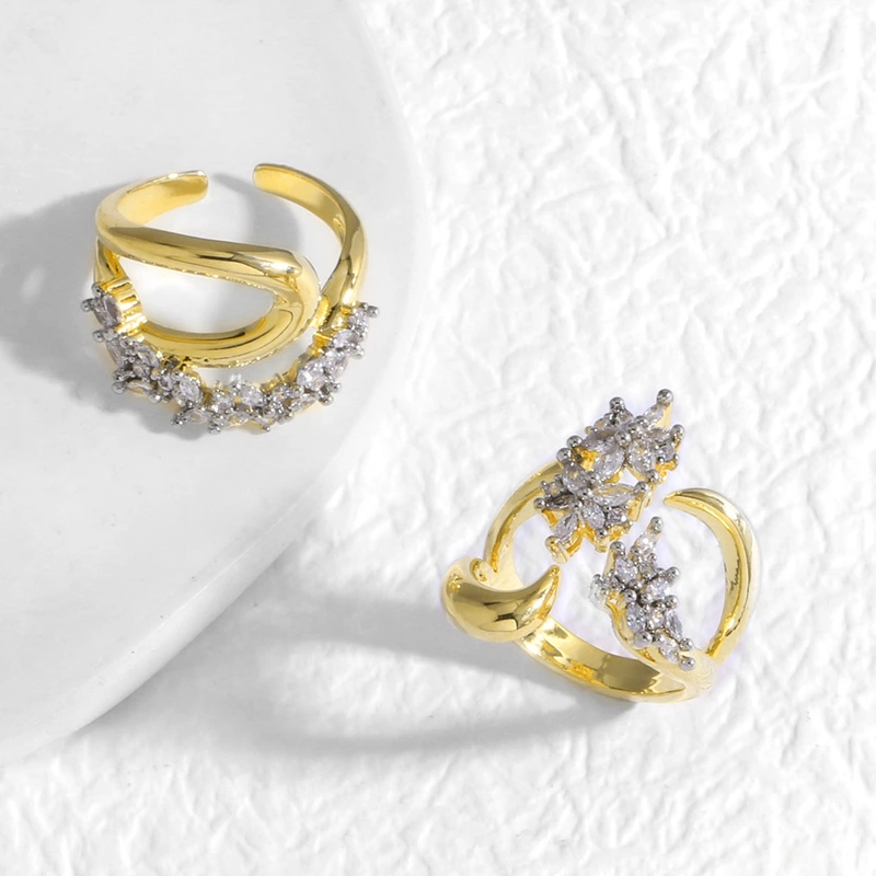 Anillo de diseño de lujo europeo y americano, anillo de circonita con ojo de caballo de temperamento moderno, anillo para dedo índice con diseño hueco multicapa.
