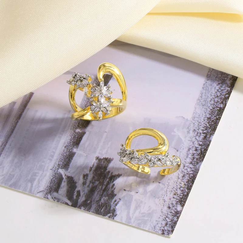 Pendientes de clip de oreja sin perforar de doble capa chapados en cobre de oro de 18 quilates, aretes rir86, anillo