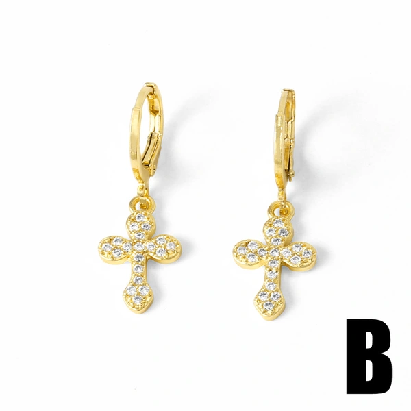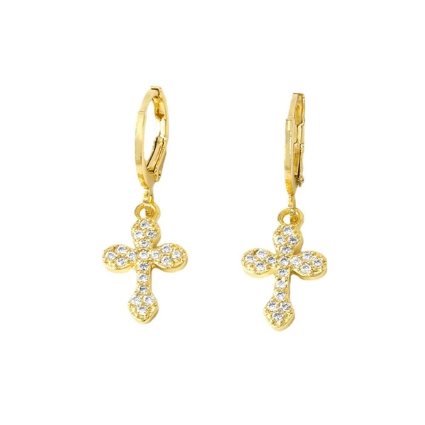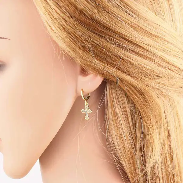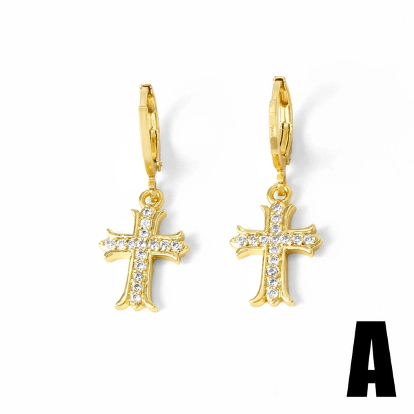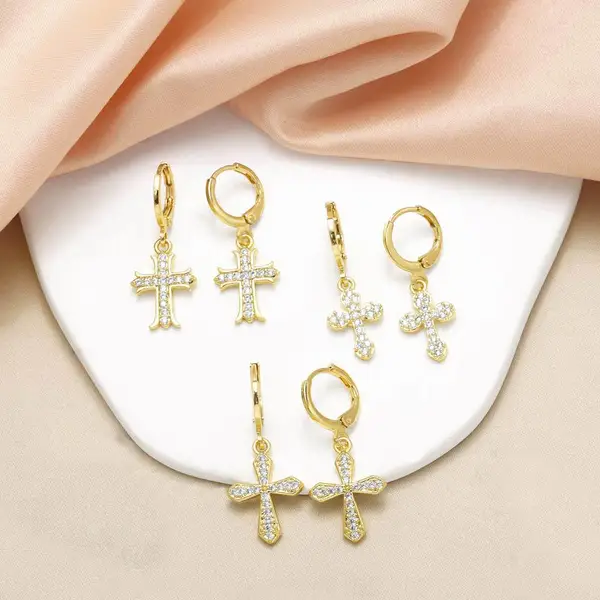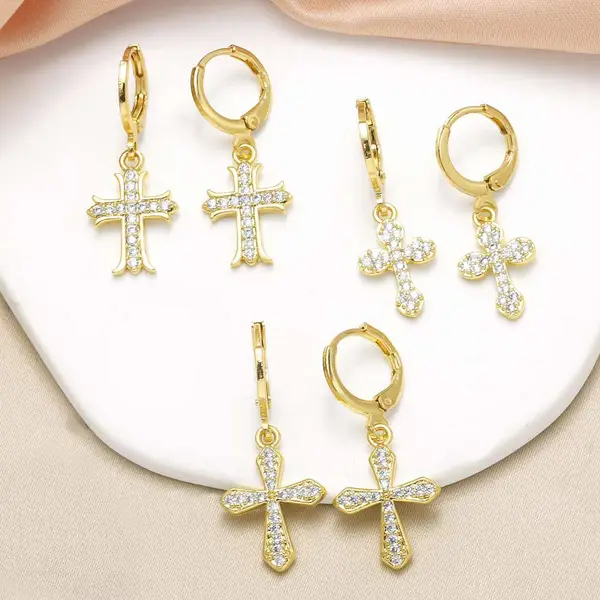 Pendientes de cruz con circonitas, muy populares, chapados en cobre y oro auténtico, para mujer, era378