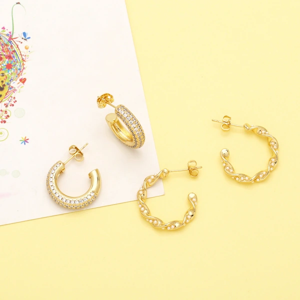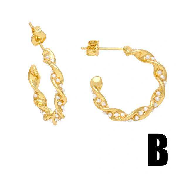 Pendientes de estilo europeo y americano en forma de C, estilo frío, con nicho irregular, retorcidos, con perlas de imitación, ERS95.