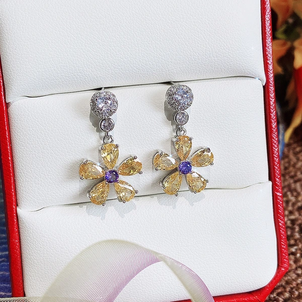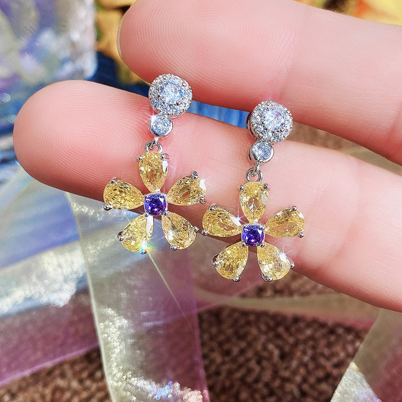 Pendientes de flores frescas japonesas y coreanas, pendientes de pétalos de circonita, pendientes de chica con personalidad de celebridad de Internet.