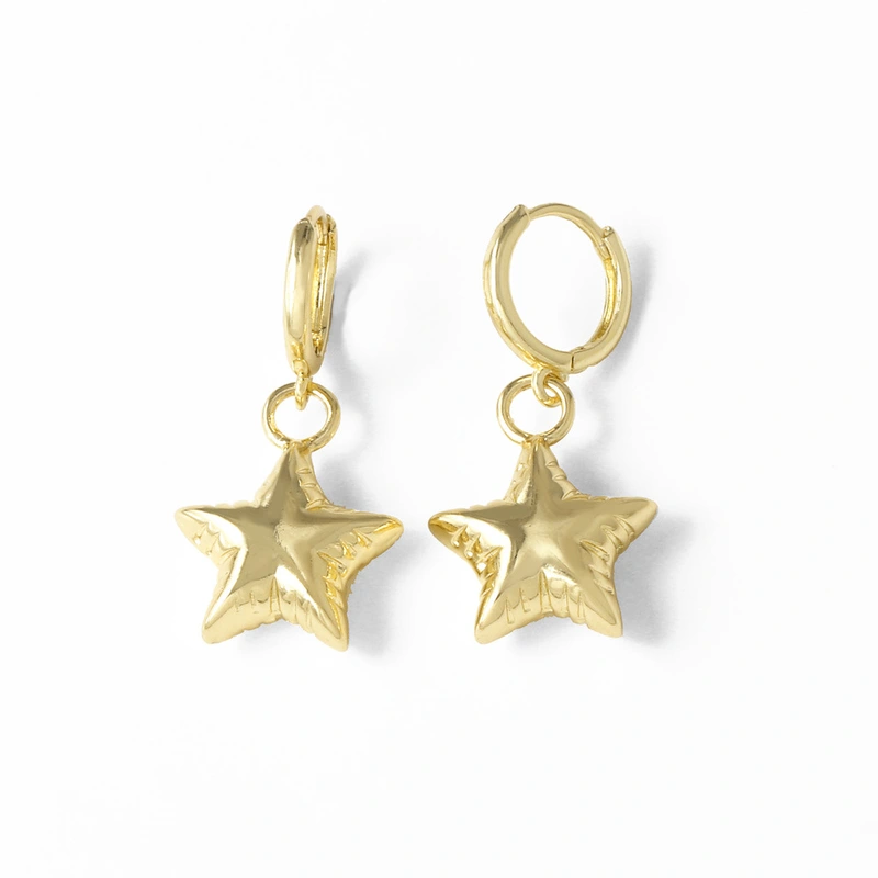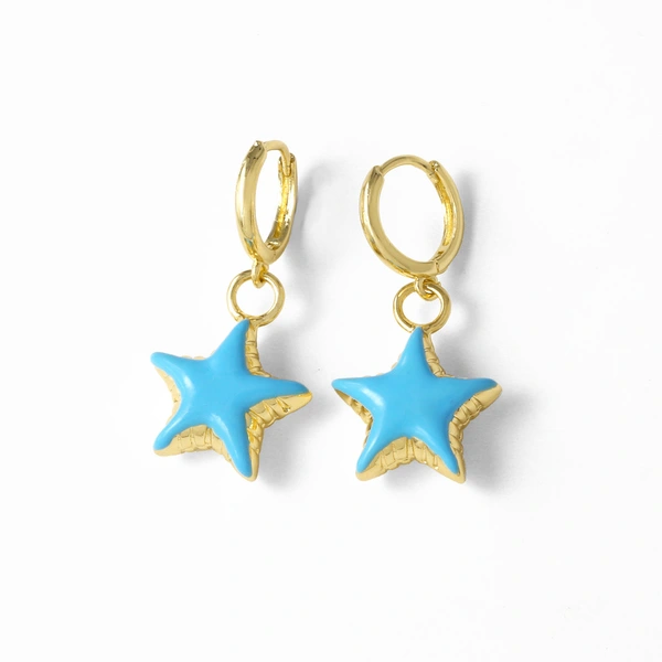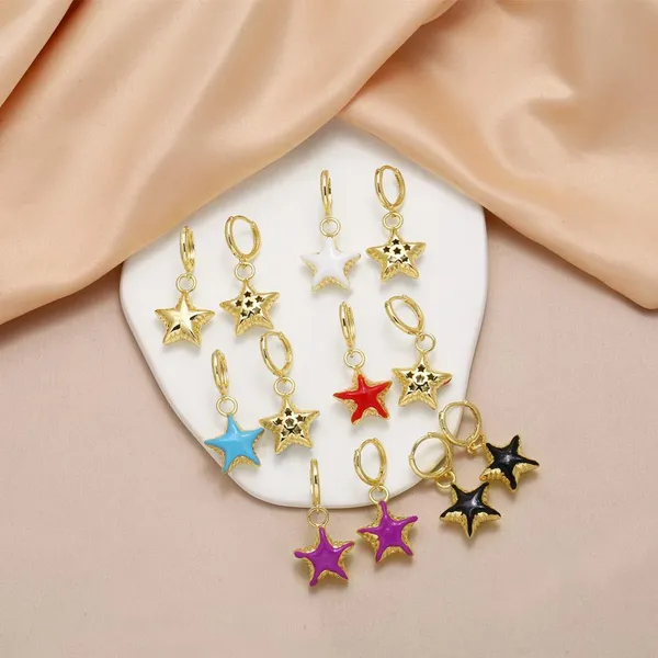 Pendientes de gota de aceite con estrella de cinco puntas bañados en oro de 18 quilates, en liquidación, para mujer, ERZ89.