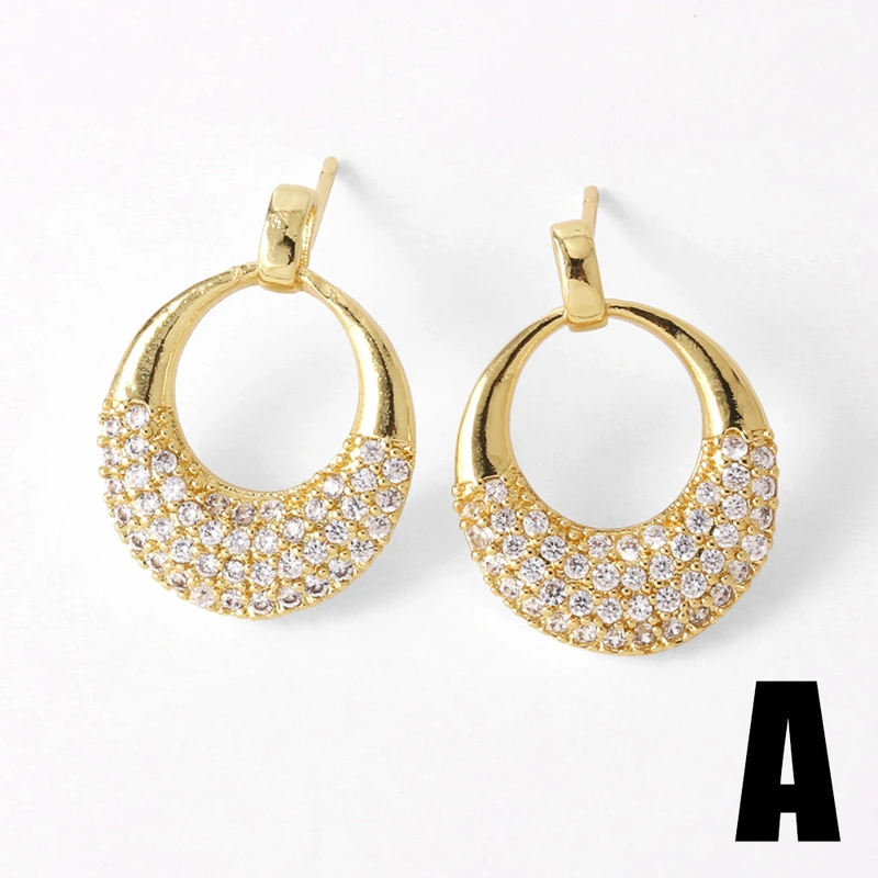 Pendientes de circonita cúbica bañados en oro con 26 letras inglesas, joyería femenina, venta caliente, era009