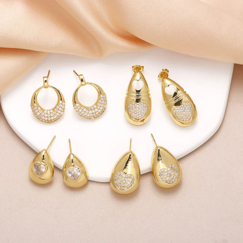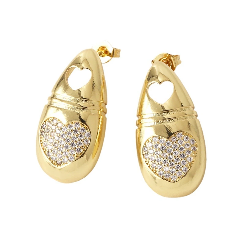 Pendientes de gota de agua con forma de corazón para mujer, chapados en cobre y oro de 18 quilates, llenos de circonitas, de alta gama, Era076