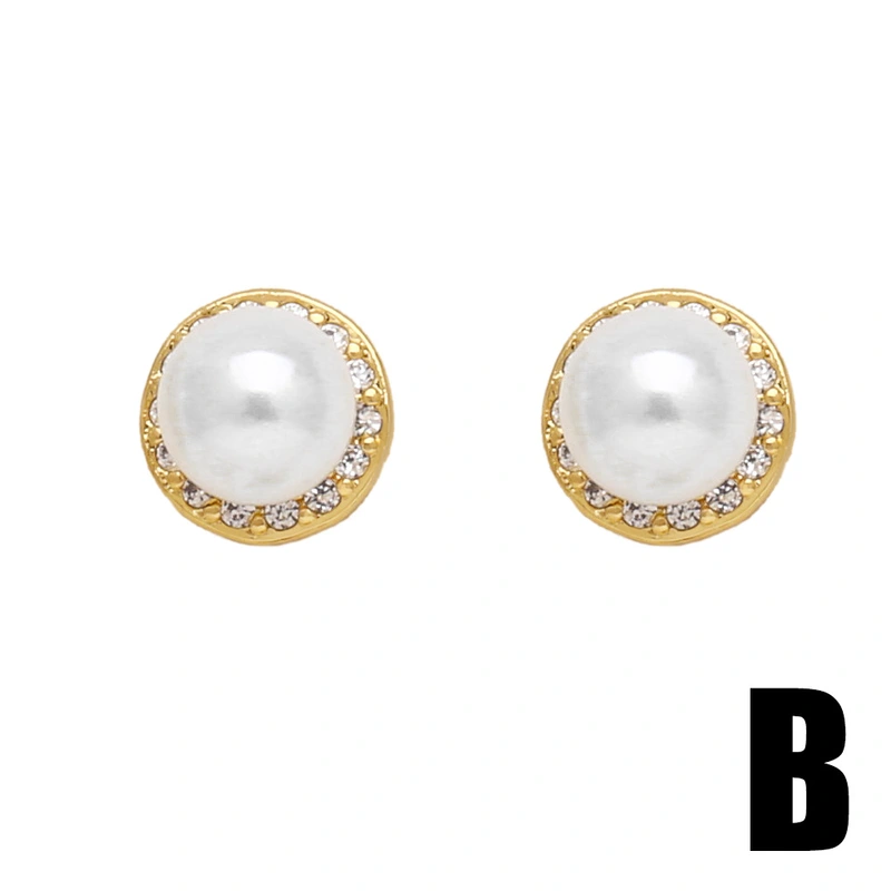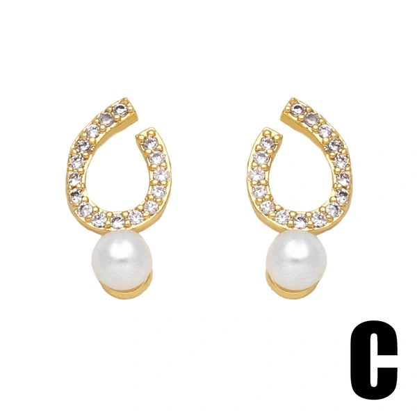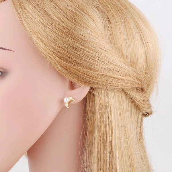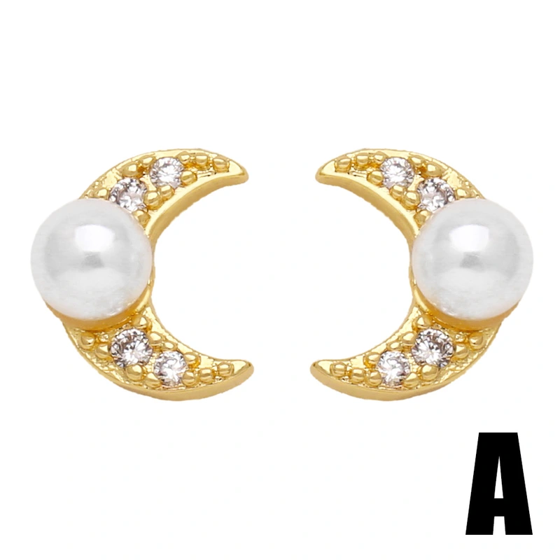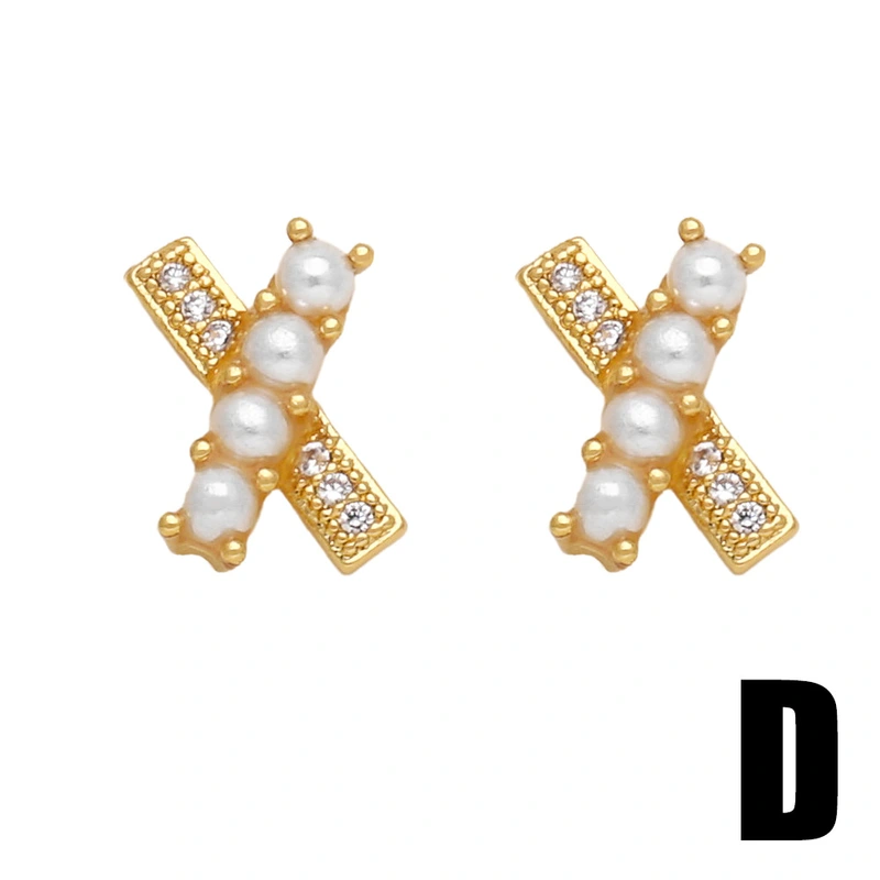 Pendientes de luna de perla para mujer, de temperamento sencillo y versátil, con incrustaciones de circonita y letra X, ERV99