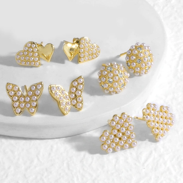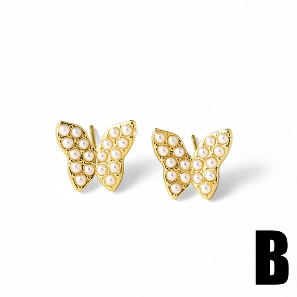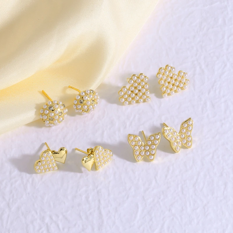 Pendientes de mariposa con forma de corazón y perla chapada en oro auténtico, muy populares como joyería, pendientes ERA140.